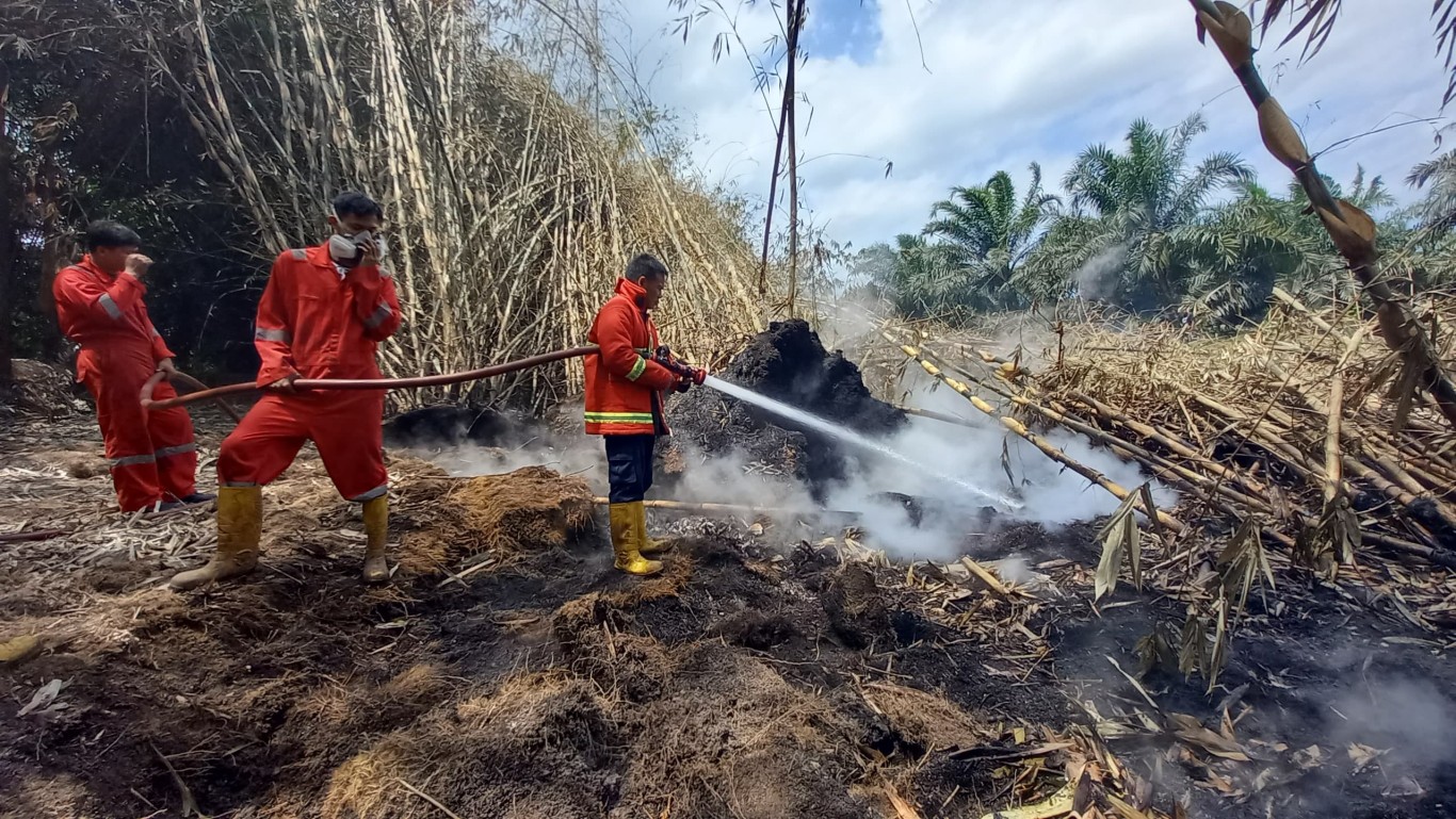 PROSES PEMADAMAN KEBAKARAN LAHAN PERKEBUNAN SAWIT DI DESA TANJUNG RAMAN